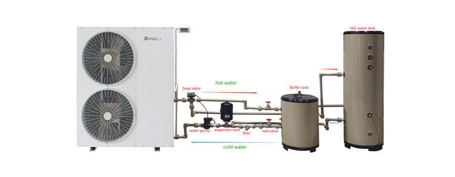 • optymalny zład wody może być zgromadzony w grzejnikach, instalacji podłogowej, ale często to nie wystarcza. A właśnie do zwiększenia zładu wody służy bufor. bufor zapewnia odpowiedni zład wody do odszraniania.